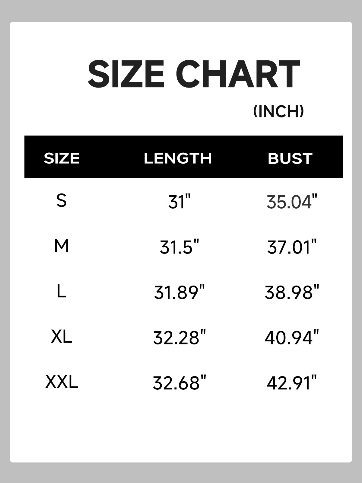 Size Length Bust